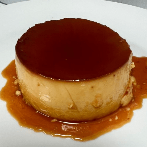 Baked custard dessert with a layer of caramel.