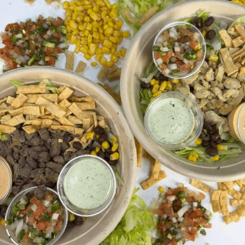 Try our new southwest salad!!! It comes with lettuce, whole black beans, and whole corn. Topped with your choice of protein, steak or chicken, tortilla chips, pico de gallo, homemade jalapeno salsa, and our homemade southwest dressing.